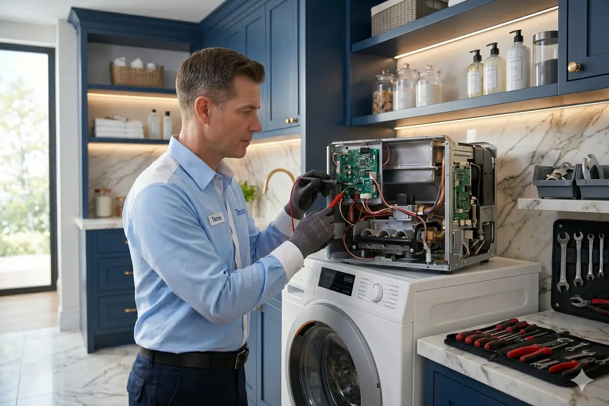صيانة الغسالات الأوتوماتيك العمودية والأمامية بكل ماركاتها — تكنوكير توكيل صيانة غسالات بقطع غيار أصلية مضمونة وفنيين معتمدين في الموقع
